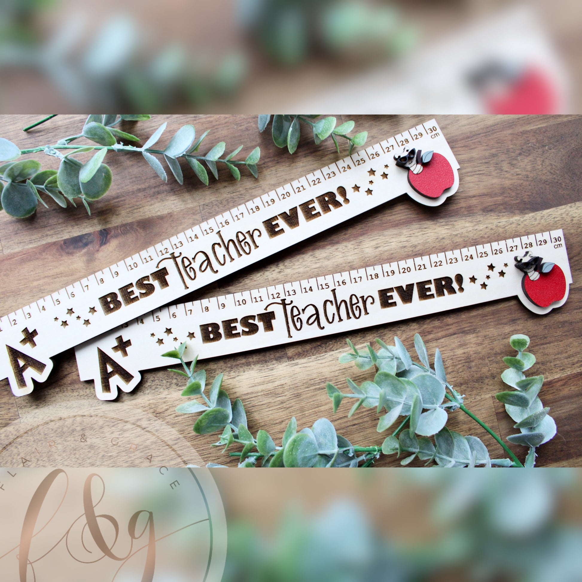 Our “Best Teacher Ever” Ruler is both functional and meaningful — featuring a laser-engraved design with “A+” and a layered red apple accent for that perfect teacher touch. Whether it’s used in the classroom or displayed on a desk, it’s sure to bring a smile every time they measure something.