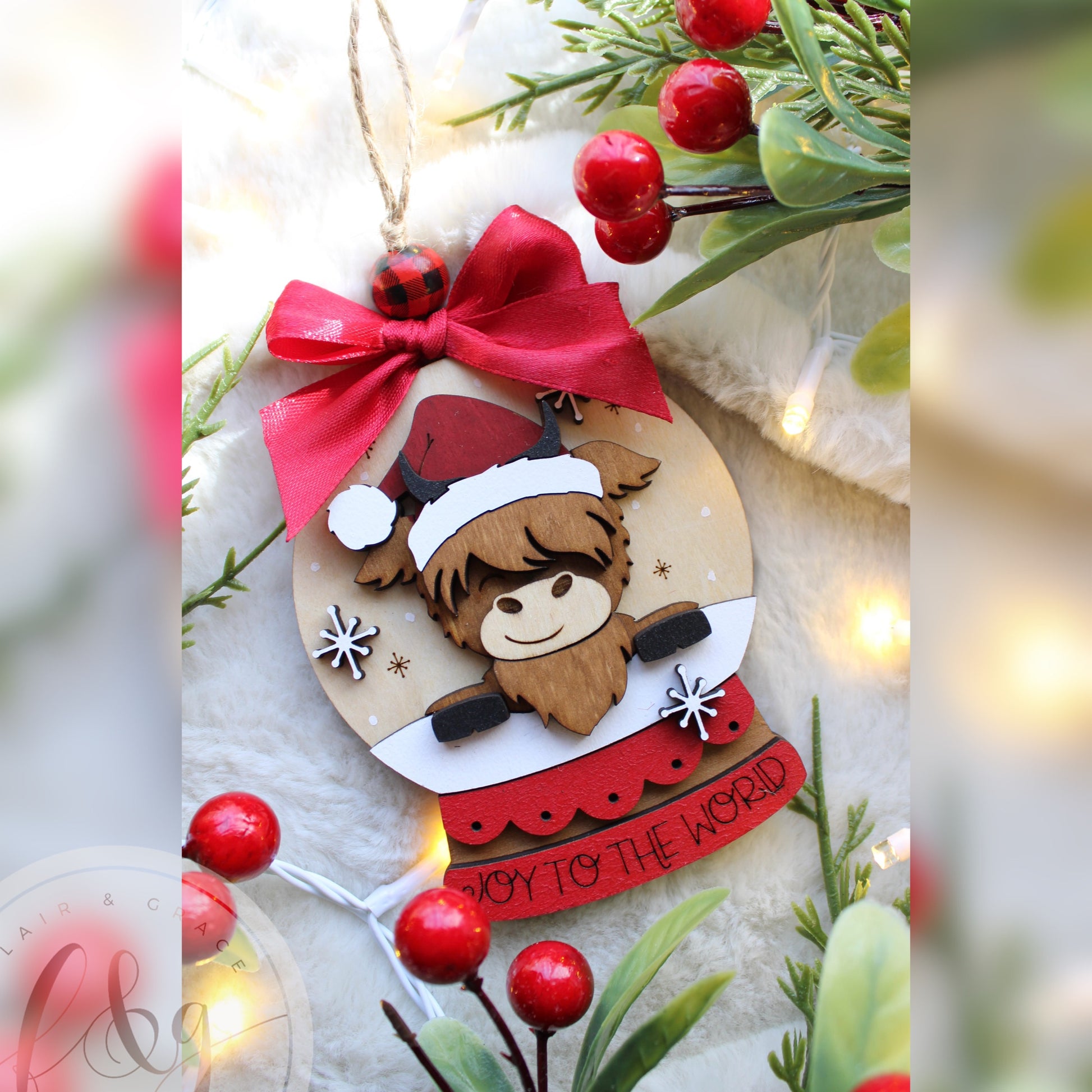 Add a little country charm and cuteness to your Christmas tree this year with our handcrafted Highland Cow ornament. Dressed in a festive Santa hat and surrounded by snowflakes, this sweet little face is sure to bring joy to the world — and to your holiday décor!