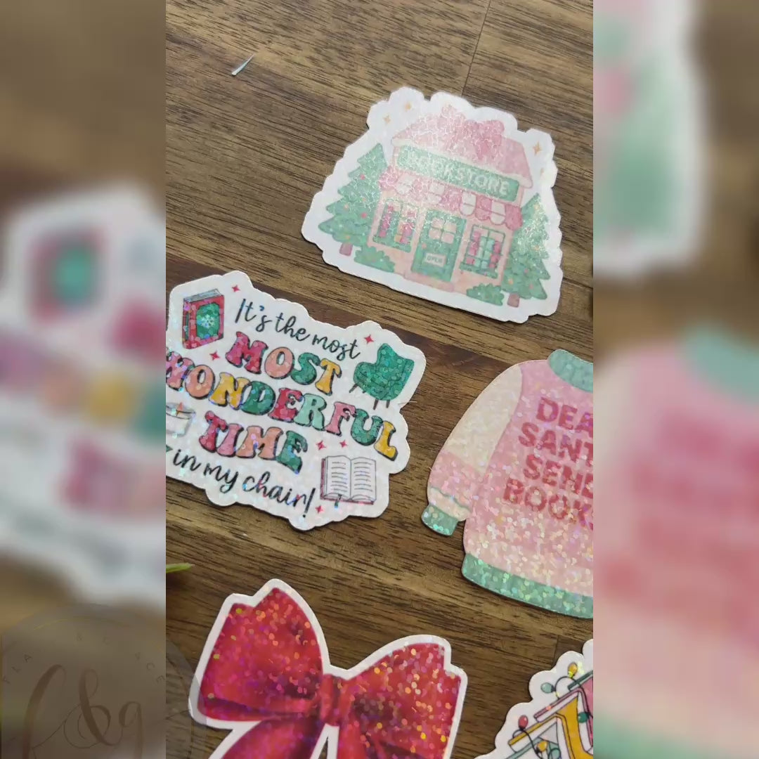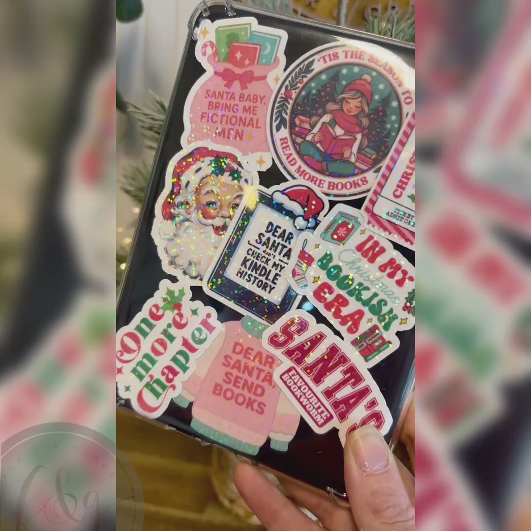 Give your planners, Kindles, book carts, gifts, and reading journals a holly-jolly glow with our Christmas Bookish Sticker Collection! Designed for readers who love to sprinkle a little Christmas spirit over everything, this set blends cosy seasonal elements with whimsical bookish charm.