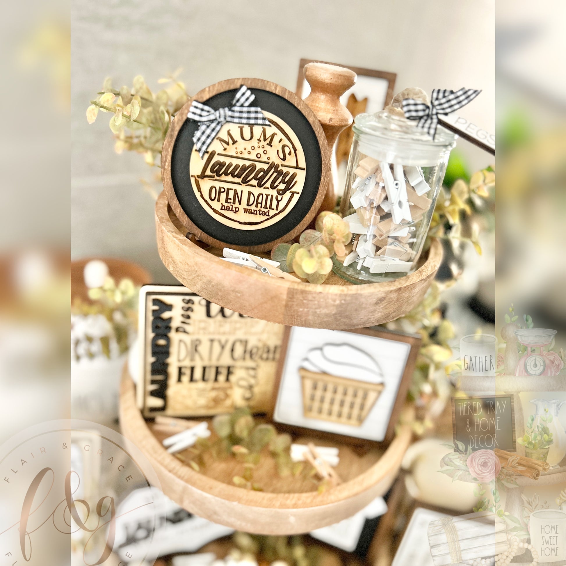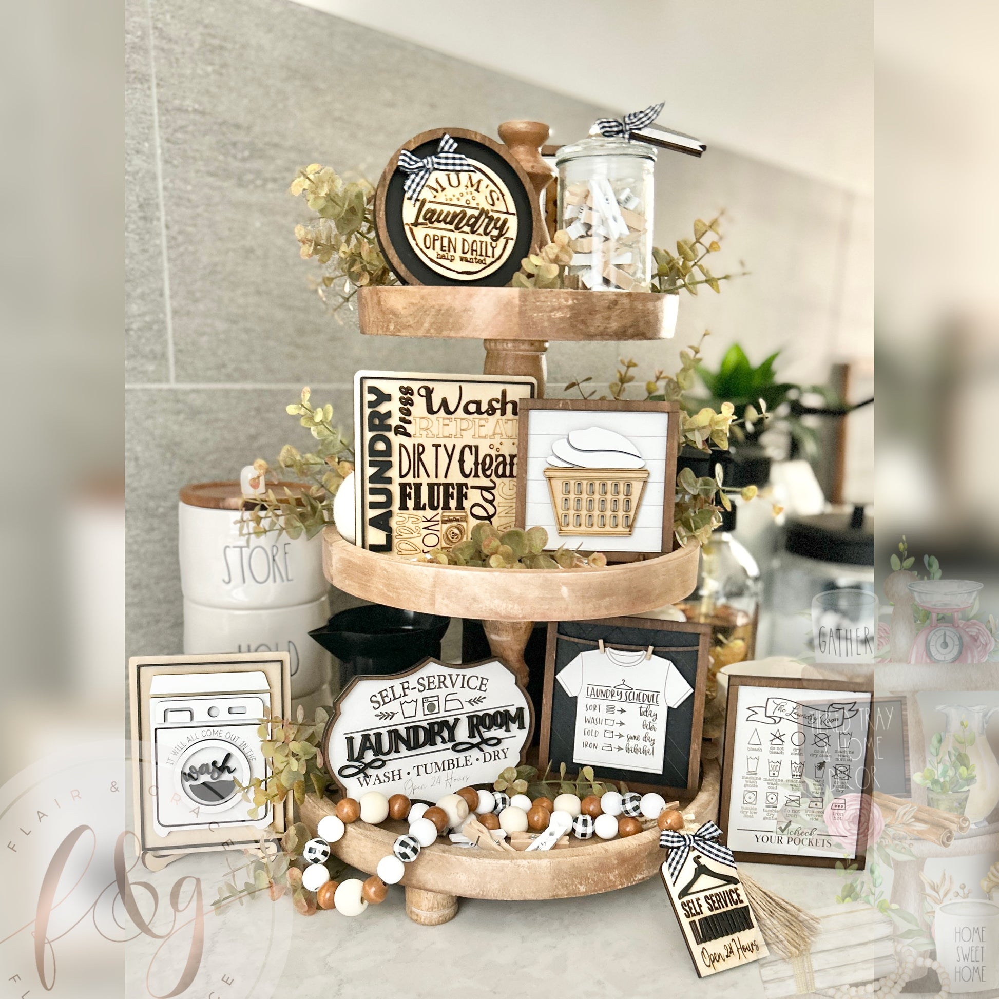 The laundry room. An often overlooked space when it comes to decorating. Not any more! Elevate your laundry room with this tiered tray collection with its rustic, modern farmhouse style. If you need to spend time in your laundry, you might as well do it in style!