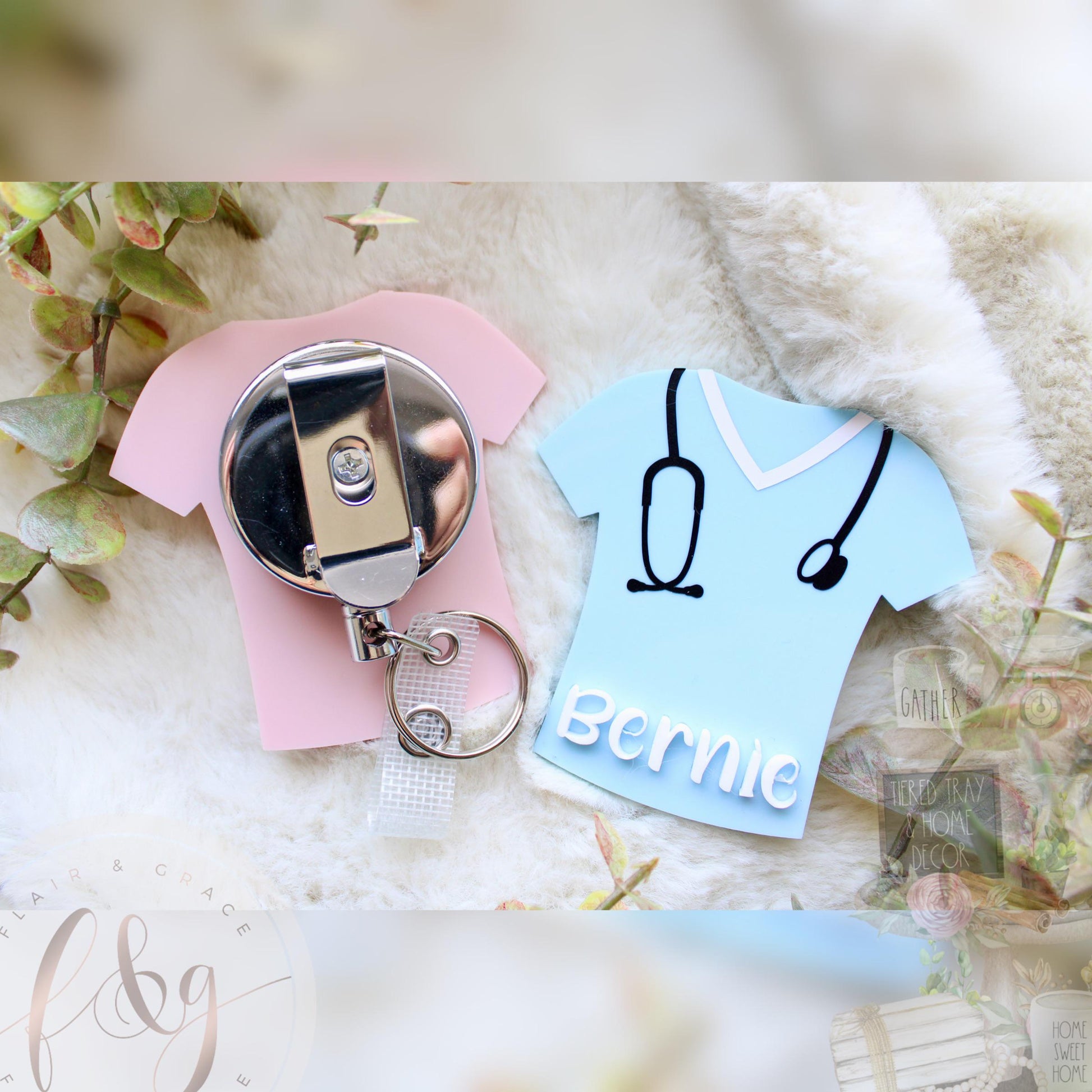 Personalised Badge Reel / Custom Name Badge / Retractable ID Holder - Scrubs