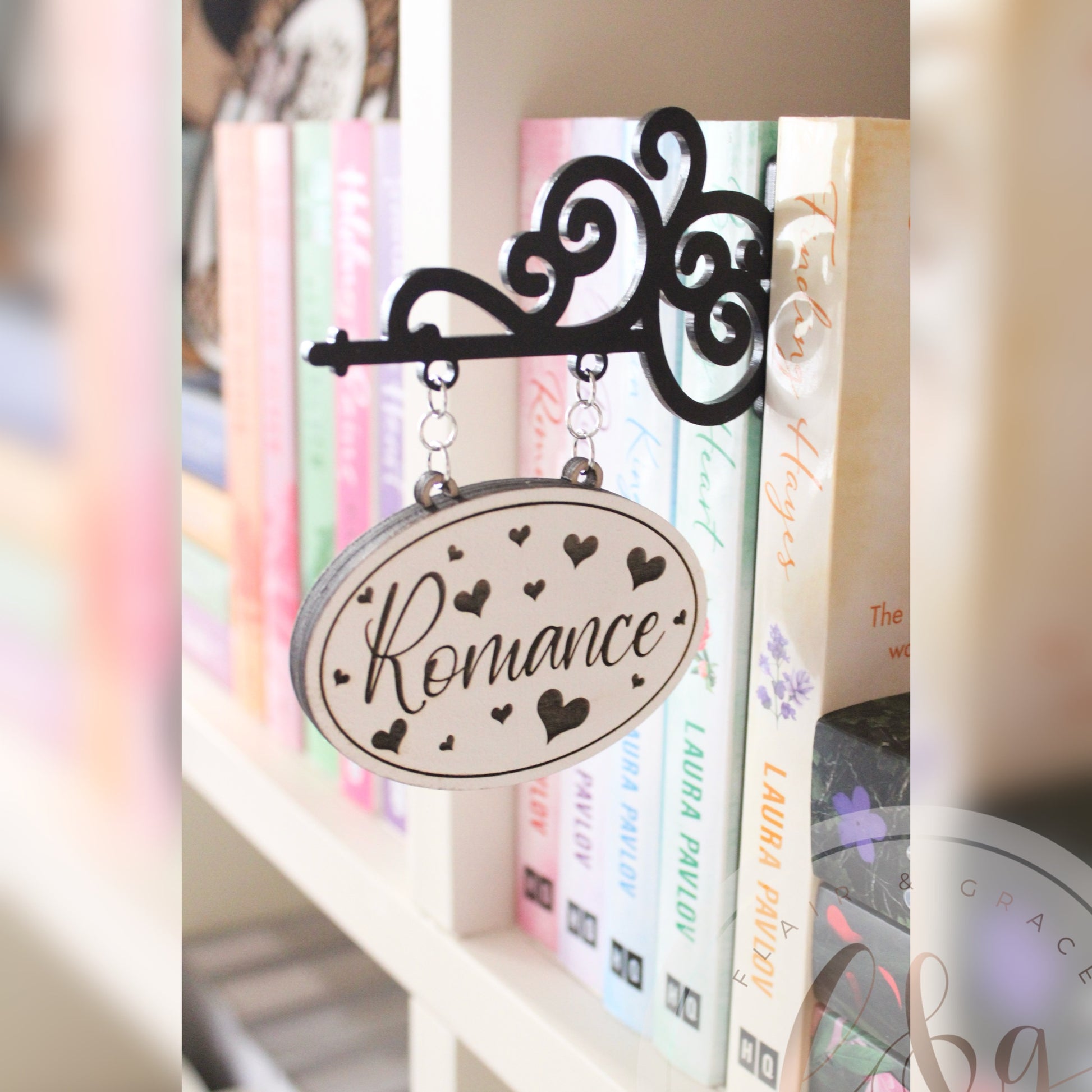 Whether you’re sorting your collection by genre—like dark romance, romantasy, or spicy small-town romance—or by your favourite authors, our signs help create a space that feels magical, curated, and uniquely yours.
