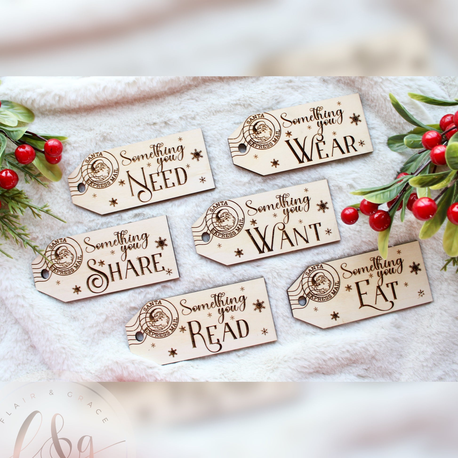 - Laser-engraved wood with a charming Reindeer or Santa Express design