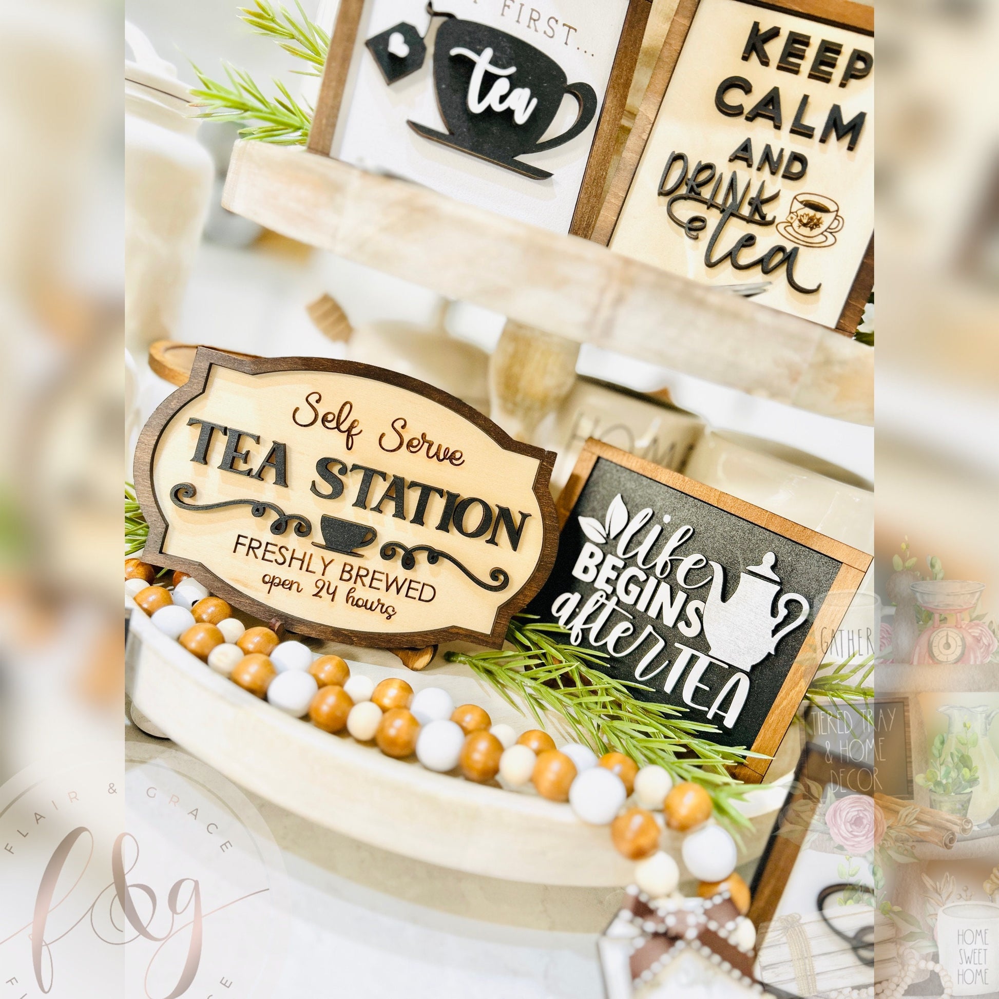 **Tiered tray/stand and other decor items not included, they are just to give you an idea on how to style your pieces!