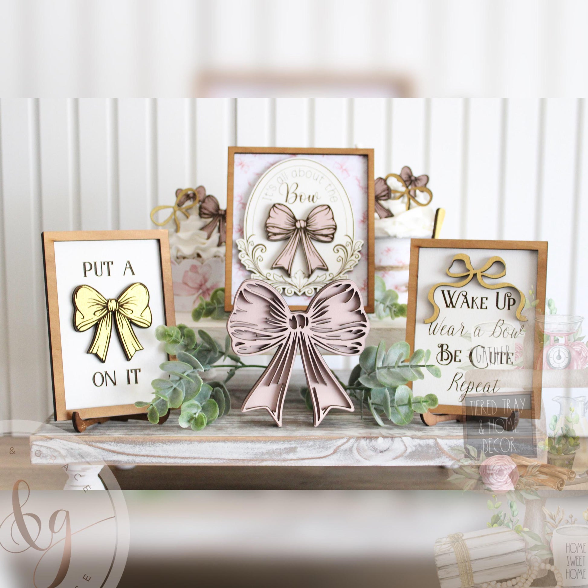 🎀 ‘That Bow Though’ is a beautifully understated collection designed to bring a touch of refined charm to your space. Featuring delicate bows in muted tones and timeless designs, this collection embodies quiet elegance—perfect for those who appreciate subtle, sophisticated decor. Ideal for enhancing your tiered trays, shelves, mantels, or tabletops with a gentle, feminine touch. These pieces are your go to for gift-giving the Bow fanatic in your life for seasonal or year-round decorating.