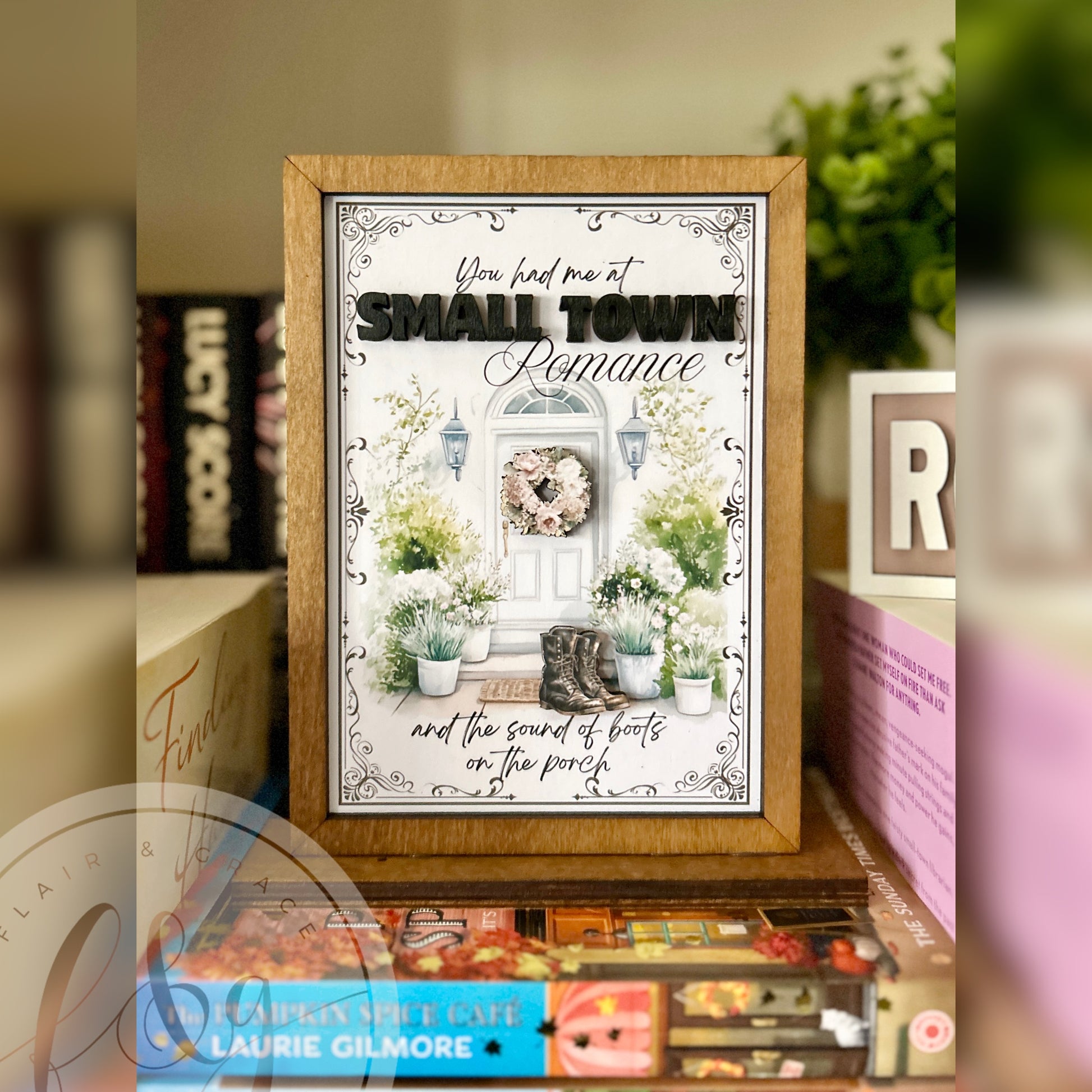 Welcome to a world where love feels like home. This beautifully detailed sign celebrates everything we adore about Small Town Romance — the warmth of slow-burn love, the charm of community, and the cozy feeling of finding your forever in the most unexpected place.